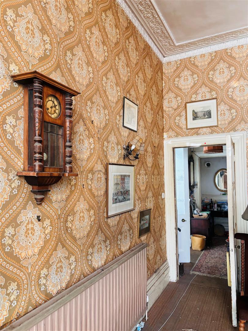 The hall floor offers an initial entrance vestibule leading to the main entrance hallway. There is a particularly impressive original living room to the front of the house which offers stunning proportions, lots of original period features, including detailed cornice work, a lovely fireplace and a large bay window overlooking the front garden. To the rear of the hall floor there is another well-proportioned living offering similar period detail to the front living room and a pleasant out look over the rear garden. Lastly there is a spacious kitchen next to the reception at the rear also overlooking the rear garden. These two room could (subject to any consents needed be opened up to provide a particularly spacious kitchen/diner.