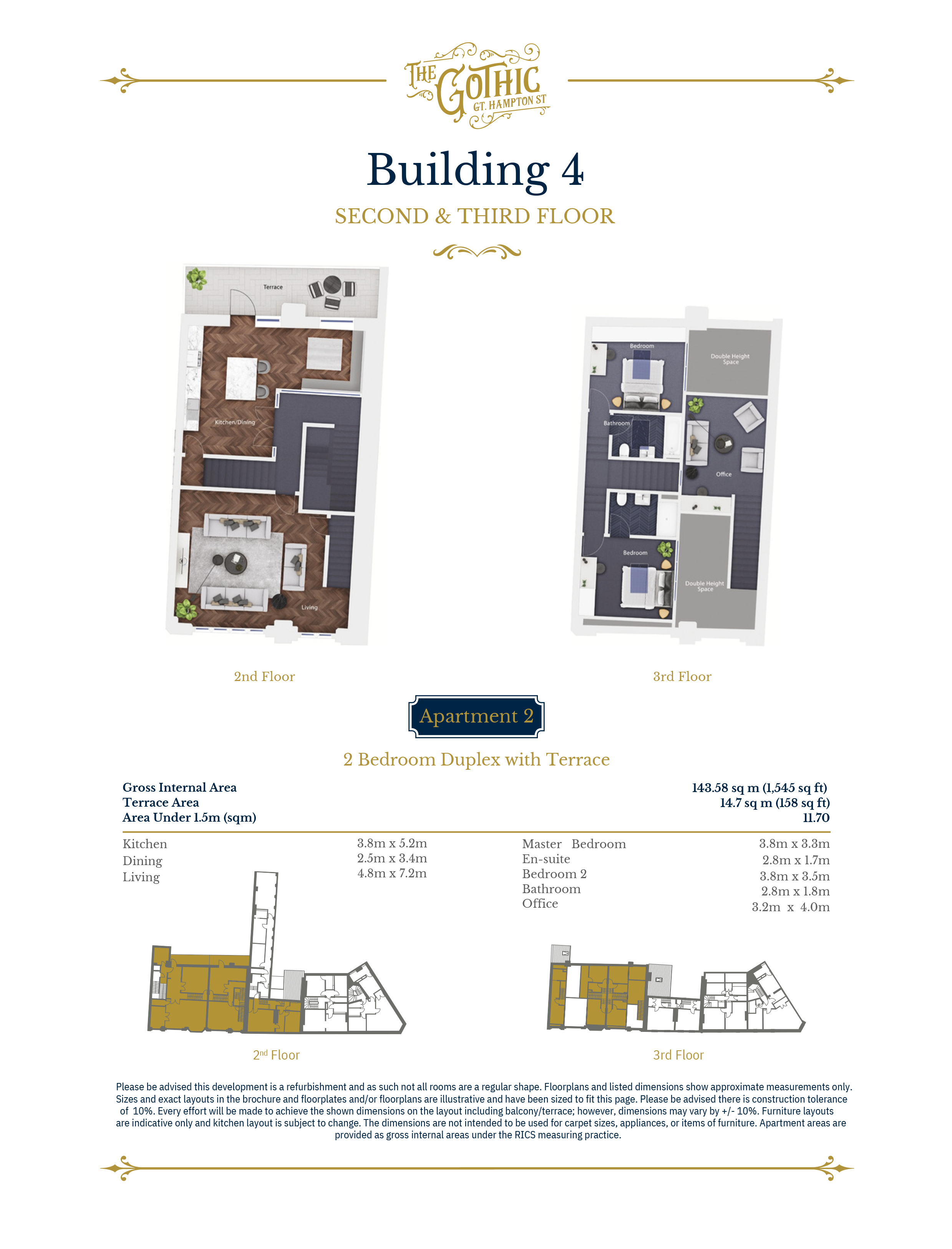 This 1,545 sq ft apartment takes inspiration from the building's industrious roots, with high ceilings , like-for-like restored windows and heritage styling throughout. These authentic Victorian features are met by contemporary decor and the latest appliances. Tasteful panelling,herringbone flooring and a modern shaker-style kitchen makes this apartment the perfecthome for Birmingham's finest creatives and professionals. With contemporary additions set within a generous duplex layout, the apartment offers the best of both worlds - the accessibility of the Jewellery Quarter with the spacious feel of a suburban home, ideal for working, living and entertaining.
